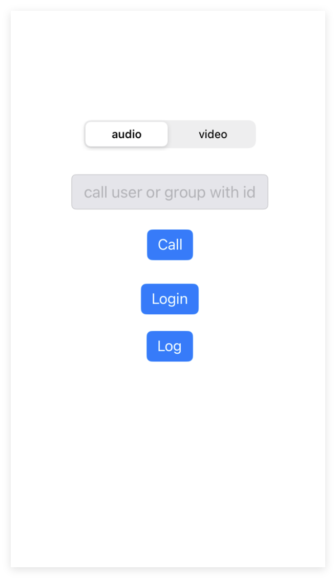 - 发起通话:选择 audio 或 选择 video,输入呼叫用户的用户 ID,点击 Call,发起一对一音频或视频通话。